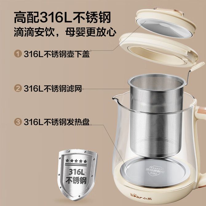 小熊/Bear 养生壶 加大316L不锈钢大滤网 煮茶器煮茶壶 恒温电热水壶烧水壶 1.5L YSH-D15D8 1.5L容量;微电脑控制;316L不锈钢大滤网;316L发热盘; 兑换价格 5500 里程 会员卡别 终身白金卡 白金卡 金卡 银卡 普通卡 儿童卡 服务 由 小枫叶专营店 发货并提供售后 颜色: 米黄色 购买数量: 件 库存件 配送地址: 立即购买 加入购物车 成功添加到购物车 关闭 购物车共有 种商品 总金额为: