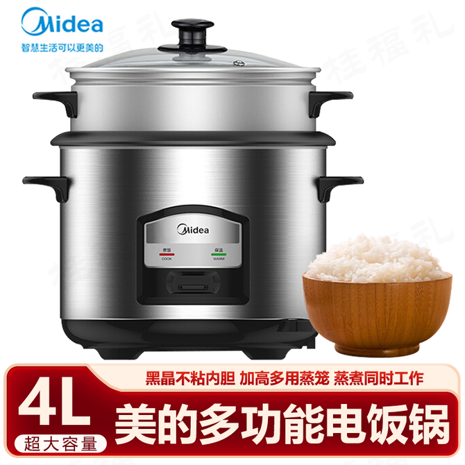 美的/Midea 电饭煲 黑晶不粘内胆加高多用蒸笼操作简单多功能电饭锅电饭煲 (木碗仅作为展示,非赠品)4L容量 优质黑晶不粘锅内胆 升级蒸屉 蒸煮同时工作 兑换价格 7800 里程 会员卡别 终身白金卡 白金卡 金卡 银卡 普通卡 儿童卡 服务 由 广西桂福礼供应链管理有限公司 发货并提供售后 颜色: 其他 购买数量: 件 库存件 配送地址: 立即购买 加入购物车 成功添加到购物车 关闭 购物车共有 种商品 总金额为: