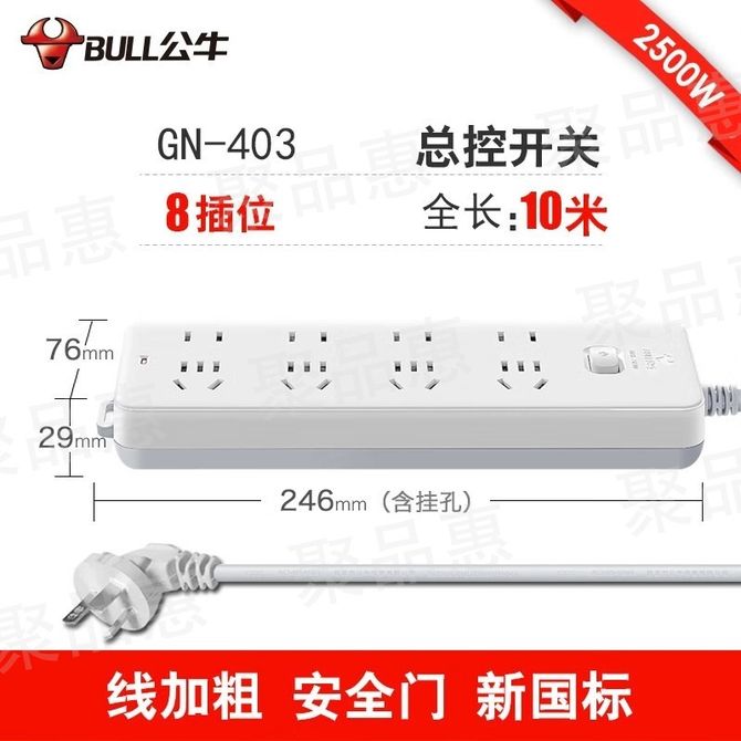 公牛(BULL) 插座带儿童保护门电源插板插座插线板插排插八位总控-10m 百搭外观 插拔顺畅 一键总控 大间距孔位 兑换价格 6000 里程 会员卡别 终身白金卡 白金卡 金卡 银卡 普通卡 儿童卡 服务 由 聚品惠家电生活馆 发货并提供售后 插排线: 有线 插位: 8插位 购买数量: 件 库存件 配送地址: 立即购买 加入购物车 成功添加到购物车 关闭 购物车共有 种商品 总金额为: 组合销售 产品介绍 产品规格 售后服务 产品咨询 发现好货 小米 多功能 3孔3USB插口 2A快充 防儿童使用安全设计插口电源插线板 白色 3000 里程 飞利浦/Philips 新国标分控插座/插线板/插板/接线板/拖线板 分控4位1.8米SPB3140WA/93 1800 里程 飞利浦/Philips 排插 1.8米总控插座 6位5孔插排 SPB2163WA/93 1500 里程 米家 魔方转换器插座 四面供电 智能快充 无线版 3USB 智能插座 3000 里程 公牛(BULL) 插座新国标高品质插线3位总控全长1.8米安全保护门插线板插排排插接线板拖线板 1200 里程