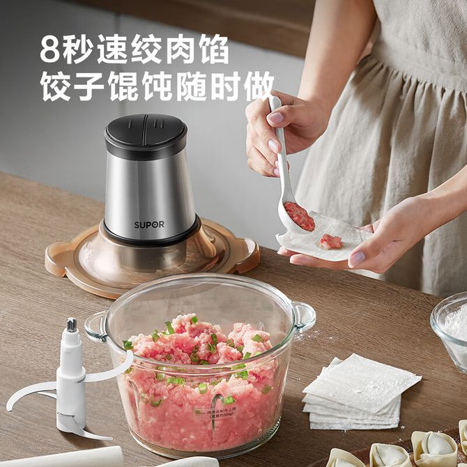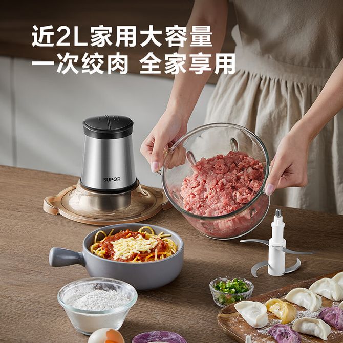 组合销售 产品介绍 产品规格 售后服务 产品咨询 发现好货 卡屋KAWU 绞肉机2.3L家用电动碎肉机PY-37930一副刀片 3300 里程 小熊/Bear 绞肉机家用绞馅机碎肉机电动多功能料理搅拌打肉饺子肉馅蒜蓉机切碎机QSJ-D03W5 4000 里程 小熊/Bear 绞肉机家用QSJ-E03K6 绞馅机 碎肉机 电动多功能料理蒜蓉机 3400 里程 苏泊尔(SUPOR) 绞肉机家用多功能电动碎肉机料理机 辅食肉馅机 蔬菜机 大容量 1.75L JR20-B175 3000 里程 卡屋kawu 蒜蓉器多功能电动无线蒜泥机 1700 里程