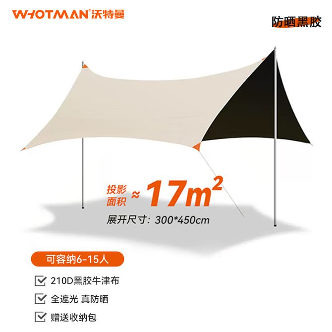 沃特曼 3*4.5m天幕户外帐篷黑胶遮阳便携式野餐防雨防晒凉棚露营装备 蝶形黑胶天幕 77744 尺寸:3*4.5m 材质:210D黑胶牛津布 兑换价格 13900 里程 会员卡别 终身白金卡 白金卡 金卡 银卡 普通卡 儿童卡 服务 由 劲芳体育生活馆 发货并提供售后 颜色: 驼色 购买数量: 件 库存件 配送地址: 立即购买 加入购物车 成功添加到购物车 关闭 购物车共有 种商品 总金额为: