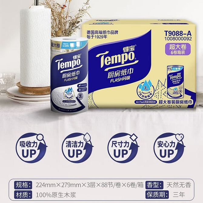 得宝 厨房卷纸88节6卷吸油吸水 新旧包装交替发货 不接受指定快递发货 兑换价格 3600 里程 会员卡别 终身白金卡 白金卡 金卡 银卡 普通卡 儿童卡 服务 由 星空紫宸生活馆 发货并提供售后 包装数量: 箱 购买数量: 件 库存件 配送地址: 立即购买 加入购物车 成功添加到购物车 关闭 购物车共有 种商品 总金额为: 组合销售 产品介绍 产品规格 售后服务 产品咨询 发现好货 维达卷纸 卫生纸实惠装厕纸家用厕所纸巾手纸整箱批有芯大卷家庭装 1200-2300 里程 维达 Vinda 卷纸 140g/卷*10卷 蓝色经典3层卫生纸 1300 里程 心相印抽纸 茶语丝享系列 量贩家庭装 3层*100抽*4包(茶香 压花) 1100 里程 心相印 经典系列 二层面巾纸 180抽*6包*1提 1100 里程 维达Vinda 超韧系列抽纸(3层*130抽*6包) 原生木浆卫生餐巾纸婴儿面巾纸 6包优惠装 1100 里程