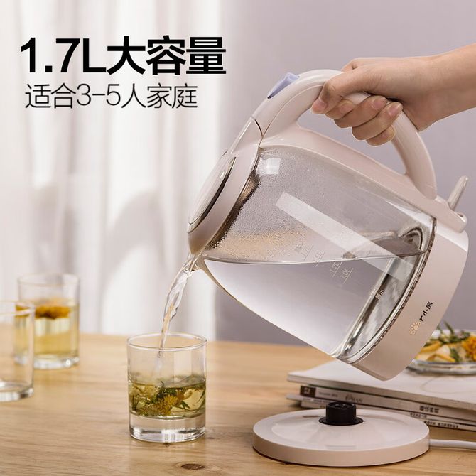 小熊/Bear 烧水壶 高硼硅玻璃烧水壶 家用1.7L大容量电热水壶 ZDH-A17L1 1.7L容量;304不锈钢发热盘;1800W大功率; 兑换价格 4400 里程 会员卡别 终身白金卡 白金卡 金卡 银卡 普通卡 儿童卡 服务 由 小枫叶专营店 发货并提供售后 颜色: 其他 购买数量: 件 库存件 配送地址: 立即购买 加入购物车 成功添加到购物车 关闭 购物车共有 种商品 总金额为: 组合销售 产品介绍 产品规格 售后服务 产品咨询 发现好货 苏泊尔(SUPOR)电水壶 1.7L 不锈钢/YL SW-17S13A 5700 里程 志高/Chigo 电水壶烧水壶1.8L大容量电热水壶双层防烫自动断电家用烧水开水壶不锈钢 电水壶 DC-A18F 1900 里程 小熊/Bear 电水壶家用烧水壶 不锈钢自动断电恒温热水壶保温一体电热水壶1.5L容量 3500 里程 小熊/Bear 烧水壶电水壶热水壶电热水壶开水壶304不锈钢内胆双层防烫1.5L大容量ZDH-Q15U8 3000 里程 志高(CHIGO) 电水壶1.8L大容量烧水壶家用热水壶开水壶DC-A18F 1900 里程