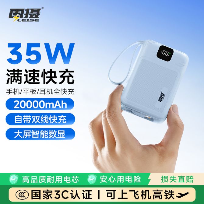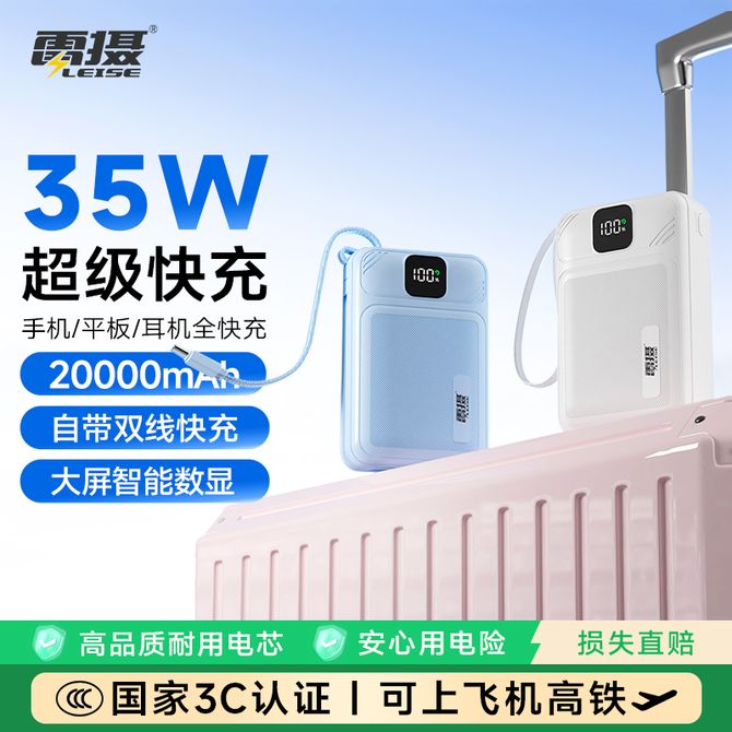 雷摄 MH850A 35W超级快充移动电源 20000毫安 自带双线 大屏智能数显 可冲手机,平板电脑,笔记本电脑 兑换价格 5200 里程 会员卡别 终身白金卡 白金卡 金卡 银卡 普通卡 儿童卡 服务 由 雷摄官方旗舰店 发货并提供售后 电池容量: 10001mAh-20000mAh 颜色: 白色 蓝色 购买数量: 件 库存件 配送地址: 立即购买 加入购物车 成功添加到购物车 关闭 购物车共有 种商品 总金额为: 组合销售 产品介绍 产品规格 售后服务 产品咨询 发现好货 ZNNCO 充电宝20000毫安时超薄小巧迷你自带线大容量快充移动电源便携苹果华为小米2万mAh手机 4200 里程 睿量/Remax 磁吸无线充电宝 Magsafe快充 5000mAh超薄小巧便携移动电源 手机背夹迷你移动电源 适用于苹果华为小米手机 RPP-107 4600 里程 雷摄 T68S【3C认证可上飞机】充电宝10000毫安 移动电源 22.5W快充丨1万毫安丨多口输出 1700 里程 纽曼(Newmine) 自带四线充电宝 3C认证 LED智能数显10000毫安移动电源 AL03 经典黑 3000 里程 雷摄 【3C认证】LS-YDZJ01 10000毫安 四线多功能移动电源 黑色 2000 里程