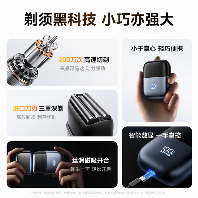 组合销售 产品介绍 产品规格 售后服务 产品咨询 发现好货 映趣 电动剃须刀男士刮胡刀充电式三刀 BlackStone黑色 3100 里程 飞利浦/Philips 电动剃须刀 S2509/S2508 三刀头 1小时充电 全身水洗 男士电动剃须刀胡须刀干湿两用须刨高效闪充 10900 里程 朗威 剃须刀电动剃须刀充电式刮胡刀电动男士双头浮动胡须胡子刀 RS182 1100 里程 超人/SID 电动剃须刀 RS210/RS215双刀头 全身水洗 便携式小巧迷 你出差旅行车载男士电动刮胡刀 2600 里程 小米 电动剃须刀小巧便携刮胡刀 Type-c充电全身水洗低噪音充电式胡须刀S100 4000 里程
