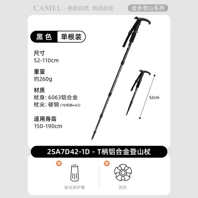 骆驼/Camel 户外登山杖超轻铝合金四节T型柄徒步登山攀岩2SA7D42-1D黑色 T柄登山杖 52-110cm 需要其他颜色请备注 兑换价格 2200 里程 会员卡别 终身白金卡 白金卡 金卡 银卡 普通卡 儿童卡 服务 由 亿宇安百户外专营店 发货并提供售后 颜色: 黑色 购买数量: 件 库存件 配送地址: 立即购买 加入购物车 成功添加到购物车 关闭 购物车共有 种商品 总金额为: