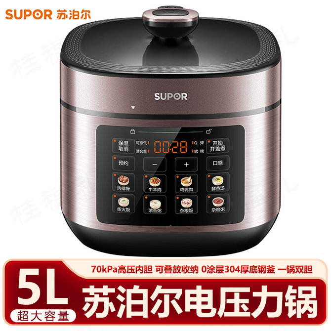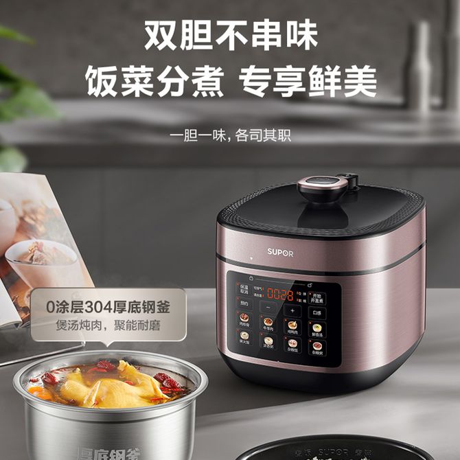 组合销售 产品介绍 产品规格 售后服务 产品咨询 发现好货 苏泊尔(SUPOR)电压力锅 6升大容量 智能触控 球釜双胆 开盖收汁 一键排压 SY-60YC8001Q 高压锅 16900 里程 美的/Midea 电压力锅家用5L大容量多功能高压锅双胆一键收汁智能预约不粘电高压锅电饭锅煮粥煲汤锅 一锅双胆【一键收汁入味】 YL50M1-702 10600 里程 苏泊尔(SUPOR) 5L电压力锅家用电高压锅双胆高压电饭锅煮饭智能预约 SY-50YC8186 11300 里程 美的/Midea 电压力锅 【一锅双胆】5L全自动家用智能预约 上蒸下煮 不粘双胆煲汤炖肉 YL50Q3-451 10900 里程 美的/Midea 电压力锅 高压锅家用电压力煲智能预约电饭煲大容量多功能定时预约电饭煲3-8人单胆旋钮款4L MY-E4809 8700 里程