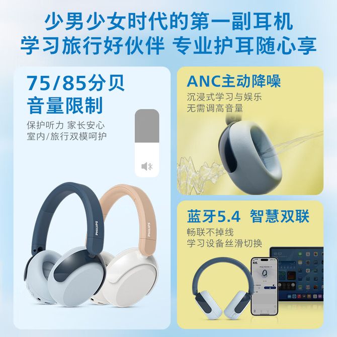 飞利浦(PHILIPS) 头戴式无线蓝牙耳机 儿童学习护耳电脑手机平板麦克风耳麦 无线音频共享 ANC主动降噪 专属APP调音 兑换价格 11700 里程 会员卡别 终身白金卡 白金卡 金卡 银卡 普通卡 儿童卡 服务 由 成都市澳杰森贸易有限公司 发货并提供售后 颜色: 蓝色 杏色 购买数量: 件 库存件 配送地址: 立即购买 加入购物车 成功添加到购物车 关闭 购物车共有 种商品 总金额为: