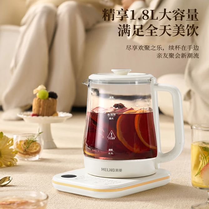 美菱/MELNG MH-DE18503 液体加热器(养生壶) 1.8L 20项功能 24小时预约 60秒提壶记忆 800W快煮 24小时保温 兑换价格 14400 里程 会员卡别 终身白金卡 白金卡 金卡 银卡 普通卡 儿童卡 服务 由 弘济家电 发货并提供售后 颜色: 白色 购买数量: 件 库存件 配送地址: 立即购买 加入购物车 成功添加到购物车 关闭 购物车共有 种商品 总金额为: 组合销售 产品介绍 产品规格 售后服务 产品咨询 发现好货 九阳/Joyoung 养生壶1.5L茶具电茶壶煮茶壶花茶壶玻璃煮茶器煎药壶中药锅药膳电水壶烧水壶 3900 里程 九阳/Joyoung 养生壶迷你玻璃花茶壶煮茶器 12大功能11档温度 电水壶热水壶烧水壶 1.5L DGD1506BQ 3900 里程 美的/Midea 养生壶 1.5L家用多功能小型全自动办公室烧水壶加厚玻璃煮茶热水壶 MK-YS15P201 4200 里程 美的/Midea 养生壶 1.5L家用养生壶全自动玻璃烧水壶24h预约烧水壶12小时防干烧保护智能恒温 MK-YS15P202 3700 里程 美的/Midea 养生壶 1.5L全自动电热水壶 24h预约12小时智能恒温 14大功能11档控温 花茶壶煮茶器MK-Y12Q 3500 里程