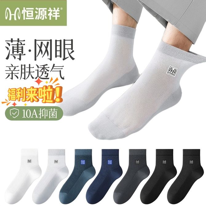 恒源祥 【6双装】袜子男款夏季薄款中筒袜网眼透气吸湿抗菌排汗休闲中筒袜【颜色随机】 吸湿透气-抗菌防臭-舒适亲肤 兑换价格 2200 里程 会员卡别 终身白金卡 白金卡 金卡 银卡 普通卡 儿童卡 服务 由 奥墩麦(河北)科技有限公司 发货并提供售后 袜子版型: 中筒 购买数量: 件 库存件 配送地址: 立即购买 加入购物车 成功添加到购物车 关闭 购物车共有 种商品 总金额为: 组合销售 产品介绍 产品规格 售后服务 产品咨询 发现好货 南极人纯棉防臭吸汗中筒男袜-黑色(5双装)N506X203010315 1500 里程 浪莎 纯棉吸汗透气男士棉袜6双装 2200 里程 恒源祥 【10双装】男士袜子夏天纯色袜子吸汗网眼防臭抗菌舒适透气百搭男袜商务休闲棉袜子【混色】 2700 里程 恒源祥 【5双装】男士商务薄款全棉抗菌防臭袜子 1900 里程 南极人 男士素色抗菌中筒袜 黑色10双装 2100 里程