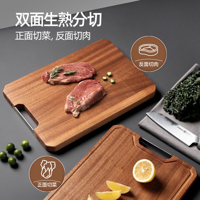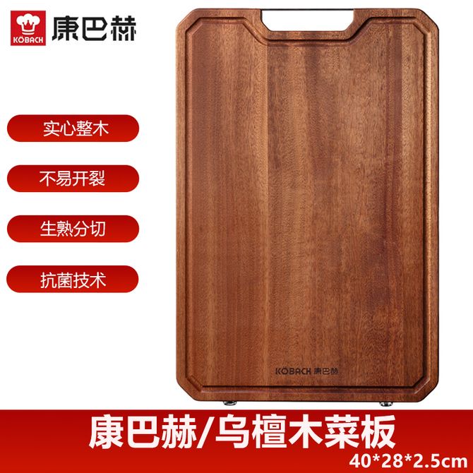 康巴赫(KBH) 乌檀木菜板 40*28*2.5cm 家用双面切菜板生熟分开切不串味防溢水槽可挂墙砧板 不易变形起屑,生熟分切双面可用,加深导流水槽,抗菌防霉 兑换价格 6500 里程 会员卡别 终身白金卡 白金卡 金卡 银卡 普通卡 儿童卡 服务 由 众生缘(江苏)互联网科技有限公司 发货并提供售后 颜色: 其他 购买数量: 件 库存件 配送地址: 立即购买 加入购物车 成功添加到购物车 关闭 购物车共有 种商品 总金额为: 组合销售 产品介绍 产品规格 售后服务 产品咨询 发现好货 Debo 迈克尔双面菜板砧板厨房加厚防滑菜板 DEP-DS425 2000 里程 好管家40CM乌檀木砧板wt004+ZBJ005款 2700 里程 德铂(Debo) 菜板304不锈钢乌檀木双面菜板防毒加厚多用砧板26.5*40cm DEP-DS425 1900 里程 德铂(Debo) 304不锈钢迈克尔双面乌檀木菜板砧板 家用厨房防毒加厚防滑砧板 2200 里程 德铂(Debo) 菜板砧板厨房加厚防滑家用菜板双面可用 2200 里程