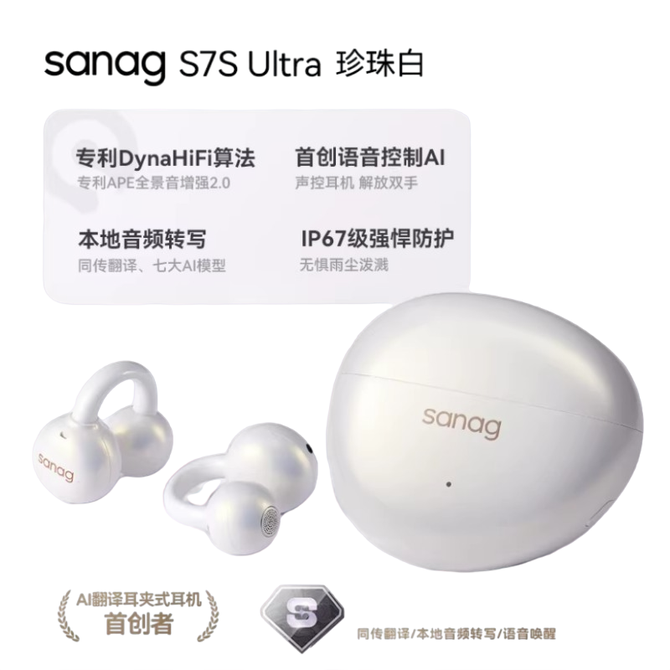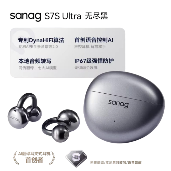 sanag 塞那S7SUltra AI蓝牙耳机 通话降噪多国语言AI翻译 录音转写 HIFI音质 原装正品,1年质保 兑换价格 24600 里程 会员卡别 终身白金卡 白金卡 金卡 银卡 普通卡 儿童卡 服务 由 会天伦3C专营店 发货并提供售后 颜色: 白色 黑色 香槟色 紫色 购买数量: 件 库存件 配送地址: 立即购买 加入购物车 成功添加到购物车 关闭 购物车共有 种商品 总金额为: 组合销售 产品介绍 产品规格 售后服务 产品咨询 发现好货 雷摄 运动蓝牙耳机无线跑步超长续航待机半入耳降噪高端健身2024新款 BT-03半入耳 1400 里程 华为/Huawei FreeBuds SE 3 无线蓝牙耳机 流光金 6100 里程 纽曼 LY63蓝牙耳机耳夹式骨传导概念开放式不入耳无线运动音乐通话降噪 3400 里程 纽曼(Newmine) 夹耳式蓝牙耳机 超无感佩戴空气感舒适体验 LY63 3400 里程 飞利浦(PHILIPS) 骨传导通话降噪耳夹式真无线开放耳机TAT3469 7000 里程