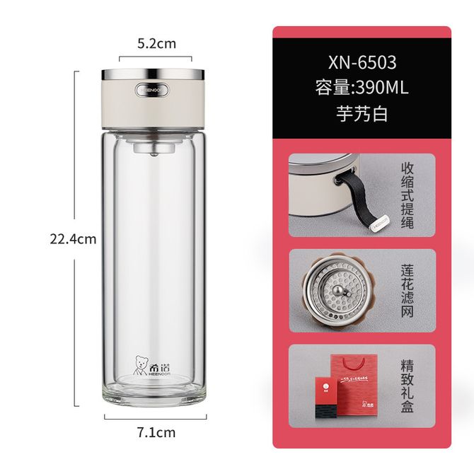 希诺 玻璃水杯双层防烫便携提绳泡茶杯 390ml XN-6503 【高硼硅玻璃 双层加厚杯身 隔热不烫手 提绳设计 密封防漏】 兑换价格 12800 里程 会员卡别 终身白金卡 白金卡 金卡 银卡 普通卡 儿童卡 服务 由 耀莱厨具 发货并提供售后 颜色: 白色 灰色 紫罗兰色 黛烟灰 购买数量: 件 库存件 配送地址: 立即购买 加入购物车 成功添加到购物车 关闭 购物车共有 种商品 总金额为: