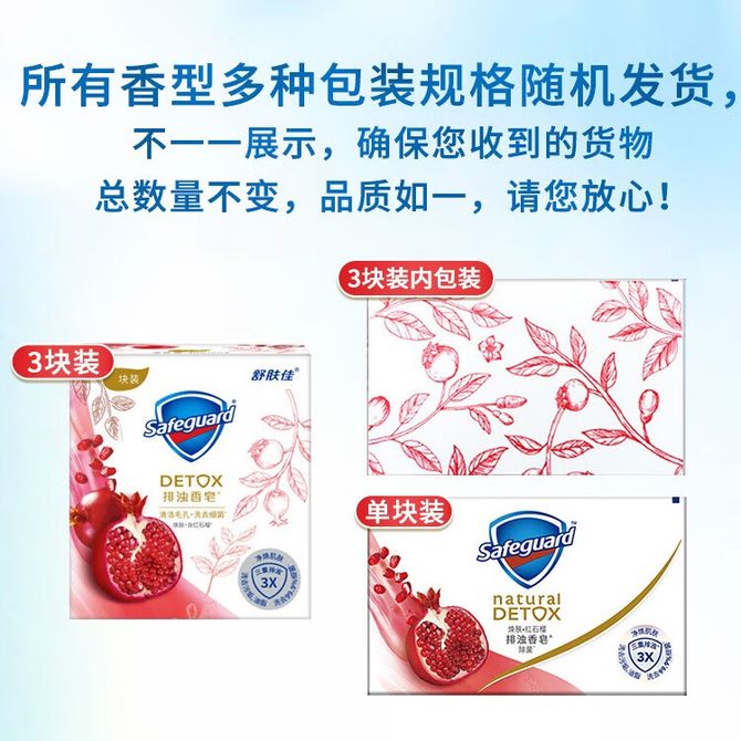 舒肤佳/Safeguard 排浊香皂红石榴三块装100g*6