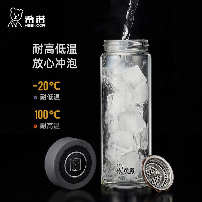 希诺 玻璃杯男女士单层加厚玻璃杯大容量茶杯家用带滤网 650ml XN-6089