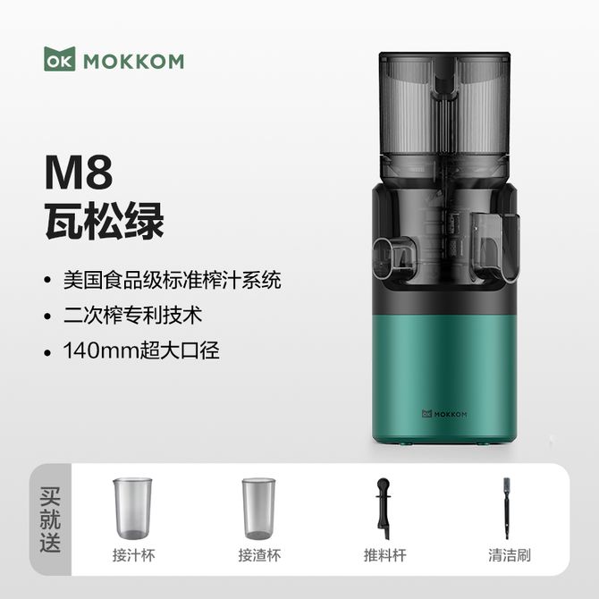 磨客/mokkom 榨汁机原汁机140mm大口径 汁渣分离二次榨汁新技术家用多功能水果蔬菜鲜榨果汁机 瓦松绿 内口径140mm|二次榨汁新技术|低音电机;详情共用 兑换价格 43500 里程 会员卡别 终身白金卡 白金卡 金卡 银卡 普通卡 儿童卡 服务 由 中农创家电生活馆 发货并提供售后 颜色: 墨绿色 购买数量: 件 库存件 配送地址: 立即购买 加入购物车 成功添加到购物车 关闭 购物车共有 种商品 总金额为: