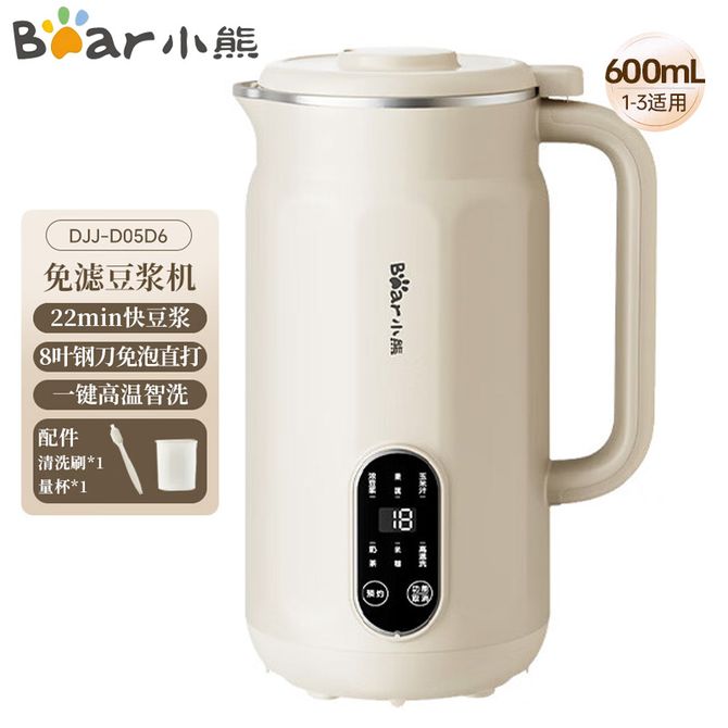 小熊/Bear 豆浆机 0.6L小型豆浆机迷你快豆浆榨汁机料理机 DJJ-D05D6 600ml容量;高温自清洗;12小时预约; 兑换价格 7400 里程 会员卡别 终身白金卡 白金卡 金卡 银卡 普通卡 儿童卡 服务 由 小枫叶专营店 发货并提供售后 颜色: 杏色 购买数量: 件 库存件 配送地址: 立即购买 加入购物车 成功添加到购物车 关闭 购物车共有 种商品 总金额为: 组合销售 产品介绍 产品规格 售后服务 产品咨询 发现好货 WIFER 豆浆机大容量破壁机料理机全自动榨汁机免滤304钢1200ML 3500 里程 WIFER 豆浆机全自动静音大容量多功能免煮免过滤辅食榨汁破壁机316钢不锈钢豆浆机米色豆浆机1.2L 4400 里程 九阳 Joyoung 破壁免洗豆浆机0.4-1.5L超大容量 智能熬煮多功能 轻松预约DJ15E-K350 52200 里程 小熊/Bear 豆浆机1-2人家用免过滤免煮五谷杂粮多功能破壁机豆浆机小型迷你榨汁机高温一键清洗 米白色 DJJ-H05C1 6700 里程 摩 动/modong 豆浆机家用破壁机 全自动免煮辅食料理榨汁机 多功能小型预约保温 白色 1.2L -MD-DJ29 7400 里程