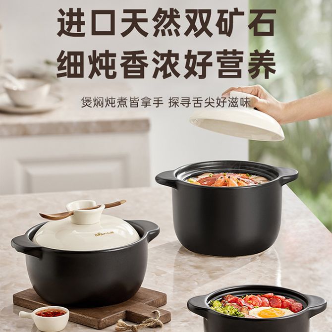 小熊 砂锅2.4L 家用煲锅砂锅耐高温干烧不裂 煲仔饭黄焖鸡煲海鲜粥煲一锅多用 【该款为单个2.4L砂锅,详情共用】进口双矿石 长效蓄热 一冲即净 兑换价格 3900 里程 会员卡别 终身白金卡 白金卡 金卡 银卡 普通卡 儿童卡 服务 由 广西桂雅文化传媒有限公司 发货并提供售后 颜色: 其他 购买数量: 件 库存件 配送地址: 立即购买 加入购物车 成功添加到购物车 关闭 购物车共有 种商品 总金额为: 组合销售 产品介绍 产品规格 售后服务 产品咨询 发现好货 荣事达/Royalstar 煲锅 砂锅煲汤熬药煮粥焖饭砂锅陶瓷炖汤沙锅家用养生汤锅瓦煲瓦罐4.6L 3900 里程 爱仕达(ASD) 煲锅 砂锅煲汤炖锅2.5L陶瓷煲仔饭砂锅燃气灶明火专用 4800 里程 炊大皇/Cookerking 砂锅5L耐高温陶瓷煲多用炖锅汤锅家用养生煲陶瓷锅明火煤燃气灶专用TCXW5002 4400 里程 炊大皇/Cookerking 砂锅 6L耐高温陶瓷煲多用炖锅汤锅 家用养生煲陶瓷锅 明火煤燃气灶专用TCXW6003 5300 里程 苏泊尔(SUPOR) 砂锅煲汤锅炖锅4.5L养生煲耐高温不开裂陶瓷煲EB45MAT01 6000 里程