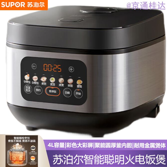 苏泊尔(SUPOR) 电饭煲家用电饭锅4L容量智能煮饭锅智能预约煮饭煲彩色大彩屏厚釜内胆多功能菜单 4L容量|彩色大彩屏|聚能圆厚釜内胆|耐用金属煲体 兑换价格 9600 里程 会员卡别 终身白金卡 白金卡 金卡 银卡 普通卡 儿童卡 服务 由 广西自贸区京通桂达科技发展有限公司 发货并提供售后 颜色: 其他 购买数量: 件 库存件 配送地址: 立即购买 加入购物车 成功添加到购物车 关闭 购物车共有 种商品 总金额为: