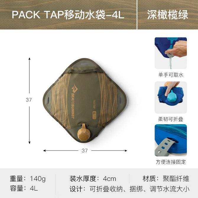 Sea To Summit 野营装备扎营移动水袋按压式水龙头储水式旅行水包 Pack Tap移动水袋-4升-深橄榄绿 Pack Tap 移动水袋空袋卷起时轻盈 兑换价格 8600 里程 会员卡别 终身白金卡 白金卡 金卡 银卡 普通卡 儿童卡 服务 由 劲芳体育生活馆 发货并提供售后 颜色: 绿色 购买数量: 件 库存件 配送地址: 立即购买 加入购物车 成功添加到购物车 关闭 购物车共有 种商品 总金额为: