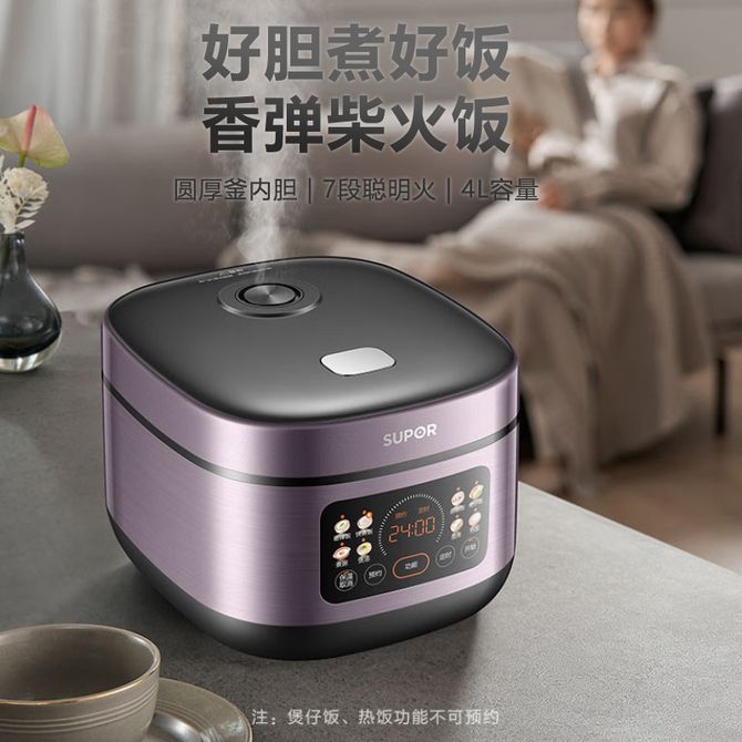 组合销售 产品介绍 产品规格 售后服务 产品咨询 发现好货 苏泊尔(SUPOR) 电饭煲电饭锅4L大容量 不粘内胆4-6个人前置大屏面板24小时预约上蒸下煮多功能家用智能SF40FC0063 8300 里程 奥克斯/AUX 电饭煲3L电饭锅 2-3人小型预约智能电饭煲VK-309F2 5100 里程 苏泊尔(SUPOR) 迷你电饭煲家用电饭锅2-3人3L小容量蓝钻不粘内胆快煮饭功能智能预约小型多功能SF30FC0187 6100 里程 美菱/MELNG 电饭煲3L触控式预约定时MF-LC3005 4400 里程 苏泊尔(SUPOR) 煮饭煮粥智能预约多功能一锅多用小型微压电饭锅30FC0187 7200 里程