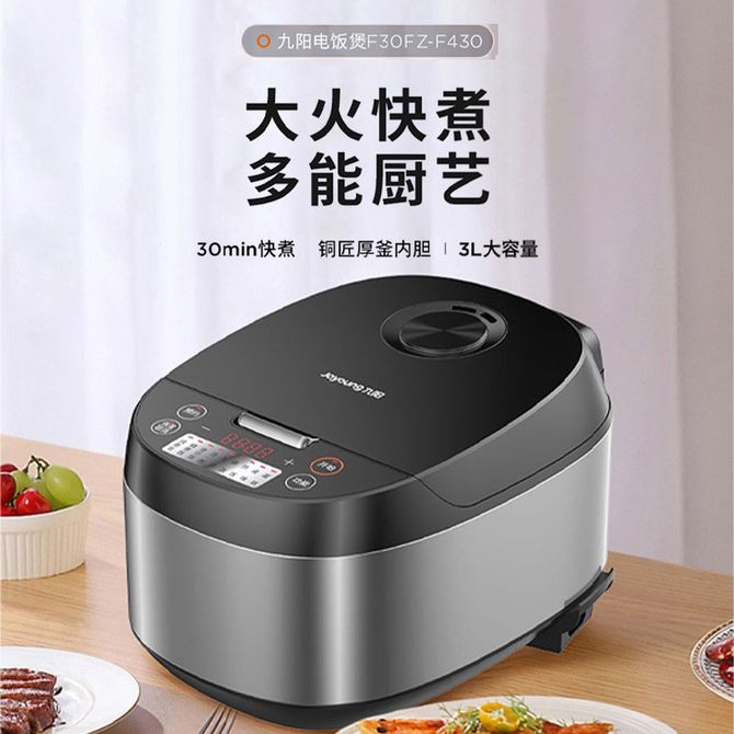 九阳/Joyoung 电饭煲 家用 3L容量多功能电饭锅智能预约多功能菜单电饭煲快煮饭 30min快煮|铜匠厚釜内胆 |3L大容量 兑换价格 8700 里程 会员卡别 终身白金卡 白金卡 金卡 银卡 普通卡 儿童卡 服务 由 中农创家电生活馆 发货并提供售后 颜色: 其他 购买数量: 件 库存件 配送地址: 立即购买 加入购物车 成功添加到购物车 关闭 购物车共有 种商品 总金额为: 组合销售 产品介绍 产品规格 售后服务 产品咨询 发现好货 苏泊尔(SUPOR) 电饭煲电饭锅4L大容量 不粘内胆4-6个人前置大屏面板24小时预约上蒸下煮多功能家用智能SF40FC0063 8300 里程 奥克斯/AUX 电饭煲3L电饭锅 2-3人小型预约智能电饭煲VK-309F2 5100 里程 苏泊尔(SUPOR) 迷你电饭煲家用电饭锅2-3人3L小容量蓝钻不粘内胆快煮饭功能智能预约小型多功能SF30FC0187 6100 里程 美菱/MELNG 电饭煲3L触控式预约定时MF-LC3005 4400 里程 苏泊尔(SUPOR) 煮饭煮粥智能预约多功能一锅多用小型微压电饭锅30FC0187 7200 里程