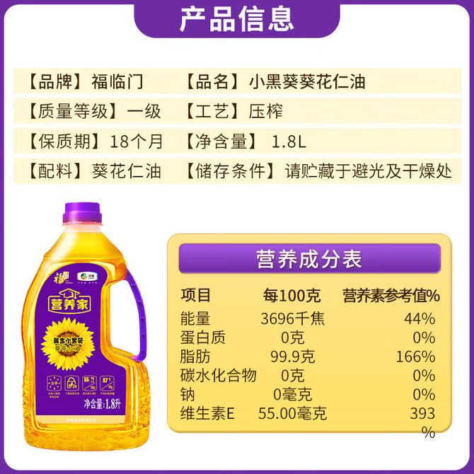 福临门 小黑葵葵花仁油含量:1.8升小瓶装 剥壳压榨 三重锁鲜 兑换价格 2000 里程 会员卡别 终身白金卡 白金卡 金卡 银卡 普通卡 儿童卡 服务 由 凯赋甄选 发货并提供售后 油品规格: 1.8L 购买数量: 件 库存件 配送地址: 立即购买 加入购物车 成功添加到购物车 关闭 购物车共有 种商品 总金额为: 组合销售 产品介绍 产品规格 售后服务 产品咨询 发现好货 长寿花 金胚玉米油食用油非转基因压榨一级 1.8L 2200 里程 珍佰粮菜籽油5L 5500 里程 福临门 一级大豆油900ML/瓶 优质家用食用油 1100 里程 福临门 家香味食用油 沂蒙土榨 花生仁油900ml 1600 里程 金龙鱼 浓香花生油5L 大桶装物理压榨一级厨房烹饪炒菜植物油粮油家庭食用油 浓香花生油食用油 5000 里程
