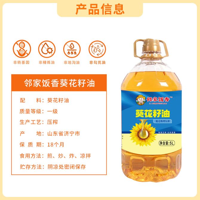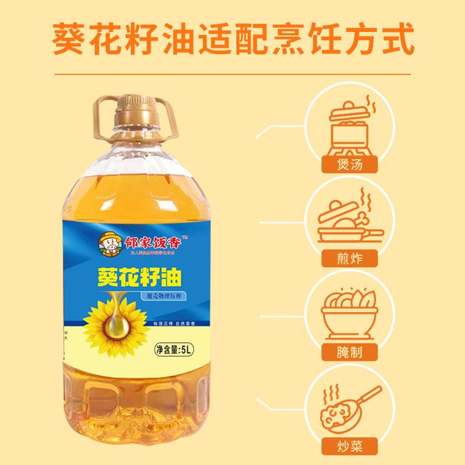 邻家饭香 物理压榨一级葵花籽油 5L/桶 脱壳物理压榨自然葵香食用油 达国标0反式脂肪酸 不饱和脂肪酸≥85% 兑换价格 5200 里程 会员卡别 终身白金卡 白金卡 金卡 银卡 普通卡 儿童卡 服务 由 四川博昊商贸有限公司 发货并提供售后 油品规格: 5L 购买数量: 件 库存件 配送地址: 立即购买 加入购物车 成功添加到购物车 关闭 购物车共有 种商品 总金额为: