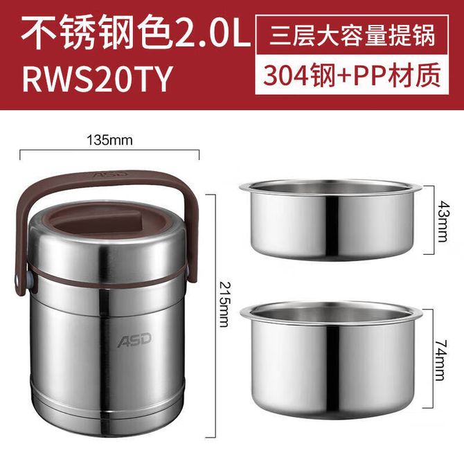 爱仕达/ASD 保温提锅臻悦提304不锈钢三层学生带饭便当盒桶 2.0L RWS20TY(保温2-4小时) 1、优质304不锈钢内胆,健康材质,坚固耐用; 2、手柄与锅体连接处添加硅胶,可减少走动时锅体的晃动,防止食物外溢; 3、配备饭格、菜格、汤格,具有三层储放食物功能,结构合理,使用方便。 兑换价格 6000 里程 会员卡别 终身白金卡 白金卡 金卡 银卡 普通卡 儿童卡 服务 由 人人余厨具专营店 发货并提供售后 颜色: 银色 购买数量: 件 库存件 配送地址: 立即购买 加入购物车 成功添加到购物车 关闭 购物车共有 种商品 总金额为: