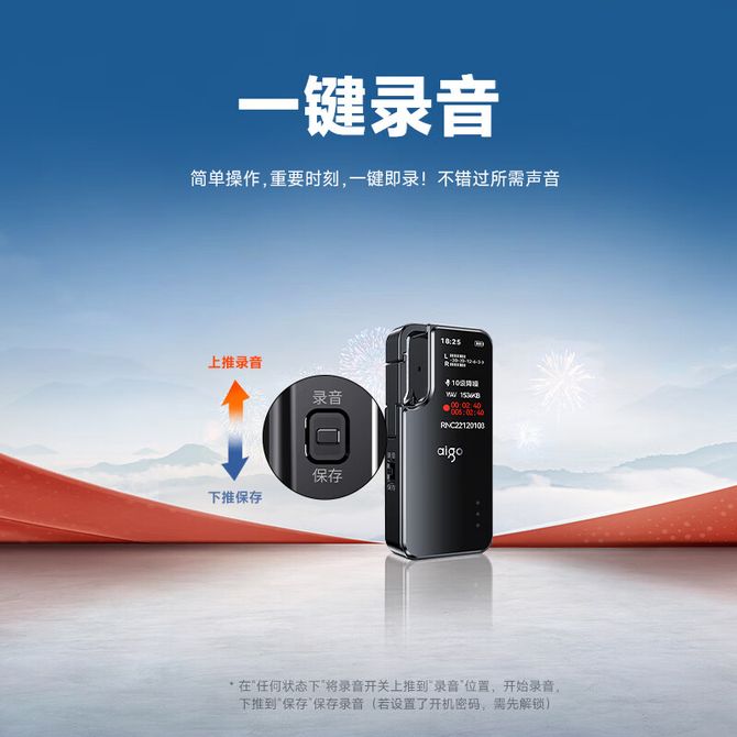组合销售 产品介绍 产品规格 售后服务 产品咨询 发现好货 爱国者(aigo) 笔形录音笔32G R8822专业高清降噪一键操作 学习培训商务会议采访速记 黑色 7400 里程 爱国者(aigo) 录音笔一键录音高清降噪 学习培训商务会议采访 MP3播放 R3312C 8G/16G/32G/64G 5200-7500 里程 惠普/HP 大容量专业录音笔超长待机XXJ1 5000-5700 里程 爱国者(aigo) 摄像录音笔R5515【64G】高清随身便携胸前专业录音录像拍照一键录音高清降噪 摄像机运动相机 12200 里程 纽曼(Newmine) 智能录音笔i30【32G】+云存储 转写助手 专业高清降噪 会议录音转文字 实时成稿 同传翻译 10900 里程