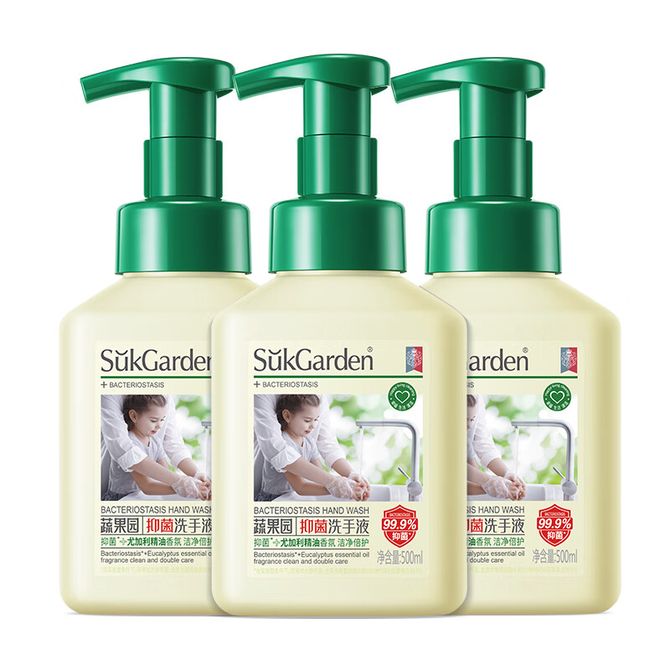 蔬果园/SukGarden 尤加利抑菌洗手液赠消毒液500ml*3抑菌杀菌护手滋润