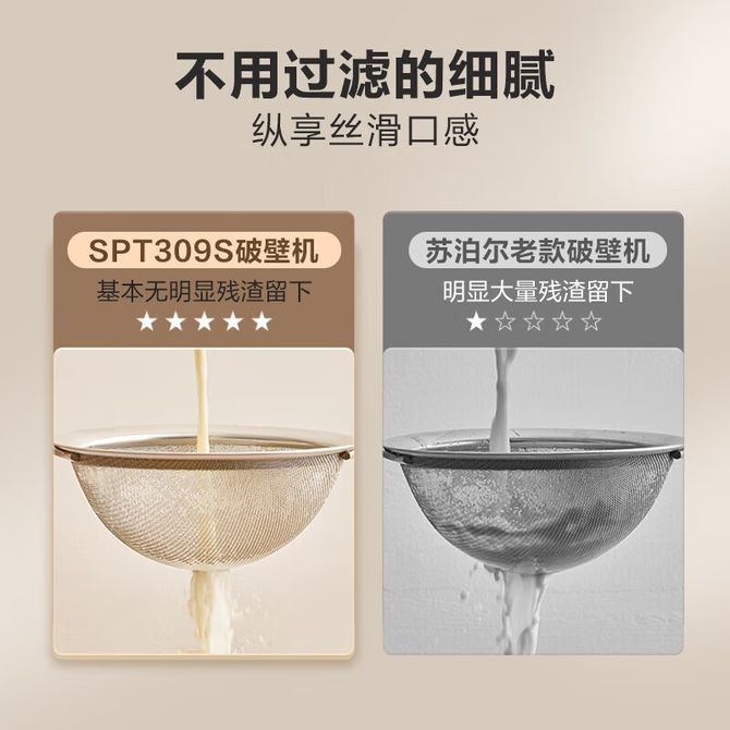 苏泊尔(SUPOR) 家用1.75L大容量降噪免滤可预约彩屏全自动豆浆机榨汁机辅食机 SPT309S 家用1.75L大容量降噪免滤可预约彩屏全自动豆浆机榨汁机辅食机 SPT309S 兑换价格 17400 里程 会员卡别 终身白金卡 白金卡 金卡 银卡 普通卡 儿童卡 服务 由 禾木电器馆 发货并提供售后 颜色: 黑色 购买数量: 件 库存件 配送地址: 立即购买 加入购物车 成功添加到购物车 关闭 购物车共有 种商品 总金额为: 组合销售 产品介绍 产品规格 售后服务 产品咨询 发现好货 卡屋KAWU 绞肉机2.3L家用电动碎肉机PY-37930一副刀片 3300 里程 小熊/Bear 绞肉机家用绞馅机碎肉机电动多功能料理搅拌打肉饺子肉馅蒜蓉机切碎机QSJ-D03W5 4000 里程 小熊/Bear 绞肉机家用QSJ-E03K6 绞馅机 碎肉机 电动多功能料理蒜蓉机 3400 里程 苏泊尔(SUPOR) 绞肉机家用多功能电动碎肉机料理机 辅食肉馅机 蔬菜机 大容量 1.75L JR20-B175 3000 里程 卡屋kawu 蒜蓉器多功能电动无线蒜泥机 1700 里程