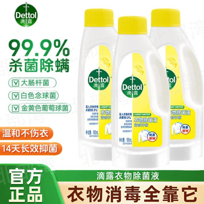 滴露/Dettol 衣物除菌液清新柠檬洗衣机温和无刺激去异味高效杀菌家用正品 柠檬香180ml*3瓶 新旧包装随机发,无磷 无荧光增白剂 99.9%深层杀菌 清新柠檬味 兑换价格 2000 里程 会员卡别 终身白金卡 白金卡 金卡 银卡 普通卡 儿童卡 服务 由 广西北部湾网络科技有限公司 发货并提供售后 净含量: 其他容量 清洁剂容量: 其他容量 购买数量: 件 库存件 配送地址: 立即购买 加入购物车 成功添加到购物车 关闭 购物车共有 种商品 总金额为: 组合销售 产品介绍 产品规格 售后服务 产品咨询 发现好货 蓝月亮 深层洁净洗衣液4斤 1kgx1瓶+500gx2补充装 薰衣草香 强效去渍 1500 里程 威露士/Walch La有氧洗洗衣液套装 4斤松木清香(瓶1L+袋500ml*2) 除菌除螨 1900 里程 威露士(Walch) 抗菌有氧洗衣液1L松木清香 1100 里程 威露士 洗衣液除菌机洗手洗家用除螨去污1L*1瓶 1500 里程 蓝月亮 【2斤/4斤大瓶装】薰衣草香 深层洁净护理洗衣液 1100-1500 里程