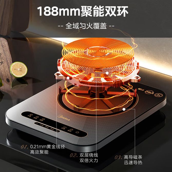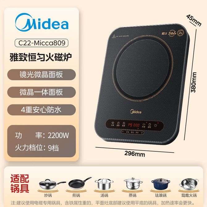 组合销售 产品介绍 产品规格 售后服务 产品咨询 发现好货 美的(Midea) 电磁炉 家用大火力电池炉电磁灶 RT21E0105 7000 里程 美的(Midea)电磁炉家用2200W大火力火锅炉汉森面板智能定时旋风防堵风机C22-RT22E01 7000 里程 美的/Midea 电磁炉 9档火力调节 2200W MC-22XA12 6500 里程 WIFER 家用电陶炉3500W大功率多功能不挑锅电磁炉爆炒电炉木纹款电陶炉BD- 838 3500 里程 美的/Midea 电磁炉 家用 2200W大功率 恒匀火加热 爆炒定时多功能电磁炉 E22B21 7400 里程
