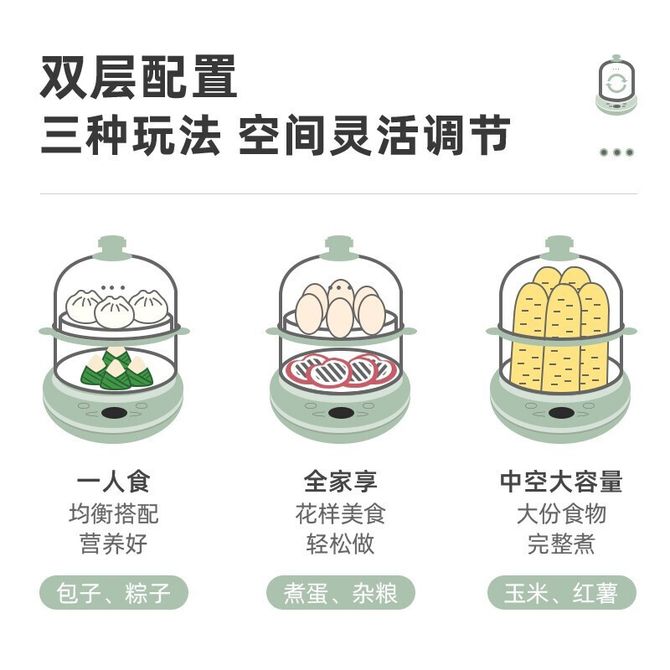 组合销售 产品介绍 产品规格 售后服务 产品咨询 发现好货 小熊/Bear 煮蛋器 蒸蛋器 单双层家用多功能高温保护早餐鸡蛋羹迷你电蒸锅 ZDQ-D12R3 2000 里程 小熊/Bear 蒸蛋器 ZDQ-D12R3 暖灰色 煮蛋器多功能家用小型双层非自动断电煮蛋神器 2900 里程 小熊/Bear 煮蛋器蒸蛋器单双层家用高温断电迷你早餐鸡蛋羹蒸鸡蛋器蒸蛋机炖蛋器便携式电蒸锅ZDQ-B14Q1 2200 里程 小熊/Bear 煮蛋器蒸蛋器单双层家用高温断电迷你早餐器蒸蛋机炖蛋器蒸蛋锅便携式电蒸锅ZDQ-B14Q1带不锈钢蒸碗 2600 里程 小熊/Bear 煮蛋器 小型家用可定时不锈钢蒸蛋器自动断鸡蛋羹迷你电蒸锅ZDQB07C3 3500 里程