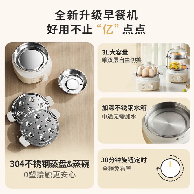 组合销售 产品介绍 产品规格 售后服务 产品咨询 发现好货 小熊/Bear 煮蛋器 蒸蛋器 单双层家用多功能高温保护早餐鸡蛋羹迷你电蒸锅 ZDQ-D12R3 2000 里程 小熊/Bear 蒸蛋器 ZDQ-D12R3 暖灰色 煮蛋器多功能家用小型双层非自动断电煮蛋神器 2900 里程 小熊/Bear 煮蛋器蒸蛋器单双层家用高温断电迷你早餐鸡蛋羹蒸鸡蛋器蒸蛋机炖蛋器便携式电蒸锅ZDQ-B14Q1 2200 里程 小熊/Bear 煮蛋器蒸蛋器单双层家用高温断电迷你早餐器蒸蛋机炖蛋器蒸蛋锅便携式电蒸锅ZDQ-B14Q1带不锈钢蒸碗 2600 里程 小熊/Bear 煮蛋器 小型家用可定时不锈钢蒸蛋器自动断鸡蛋羹迷你电蒸锅ZDQB07C3 3500 里程
