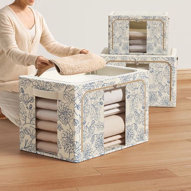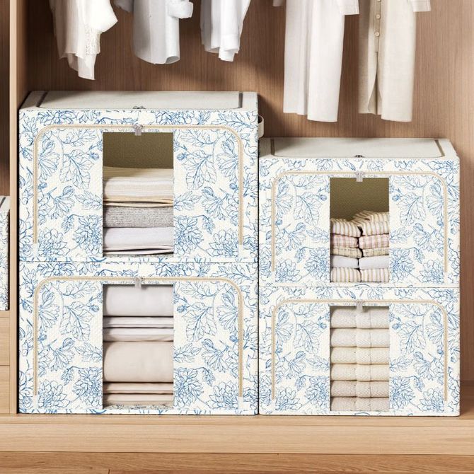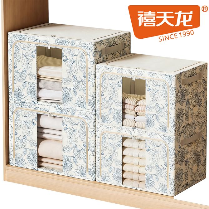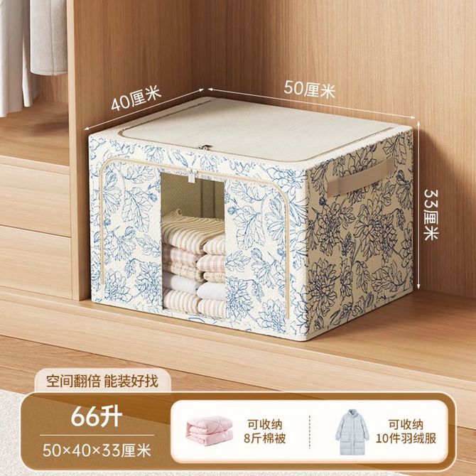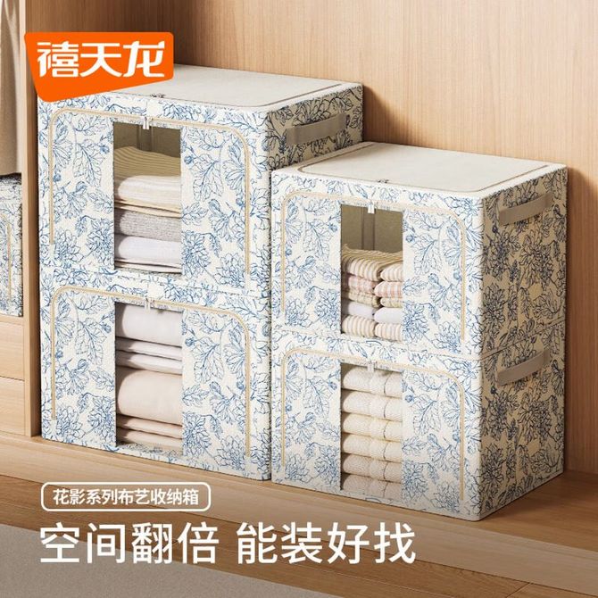 禧天龙 高颜值布艺折叠收纳箱衣柜分类收纳被子整理箱家用可视窗布艺收纳箱衣柜收纳66L 花影 50*40*33cm 66L2个装