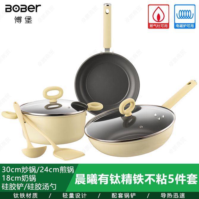 博堡/BOBER 晨曦系列有钛精铁不粘锅具五件套 炒锅煎锅奶锅配套铲勺 30cm炒锅+24cm煎锅+18cm奶锅+硅胶铲+硅胶汤勺 兑换价格 8700 里程 会员卡别 终身白金卡 白金卡 金卡 银卡 普通卡 儿童卡 服务 由 卓鹏商贸生活馆 发货并提供售后 颜色: 其他 购买数量: 件 库存件 配送地址: 立即购买 加入购物车 成功添加到购物车 关闭 购物车共有 种商品 总金额为:
