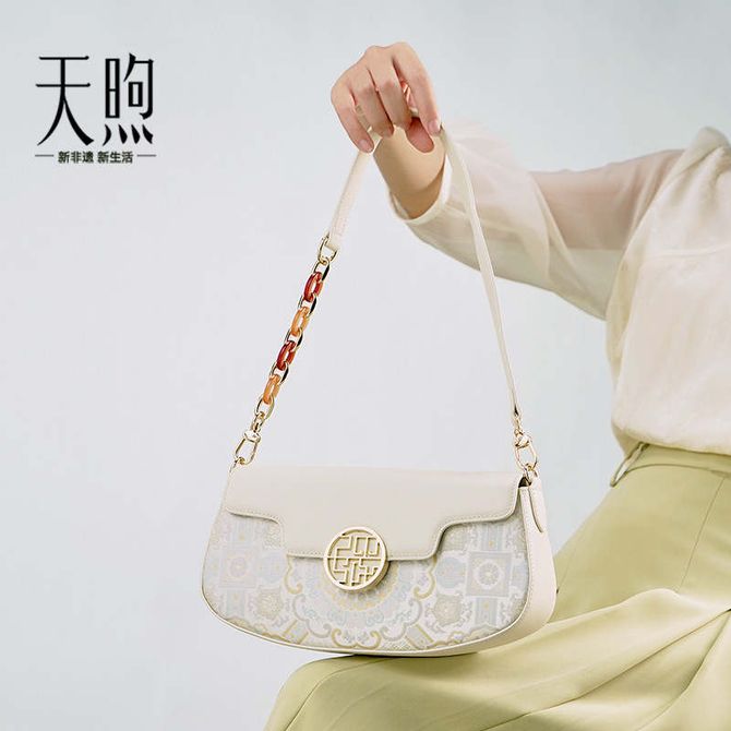 天煦/PMSIX 织锦提花八达晕锦新中式单肩包国风百搭大气斜挎女包 P22028004