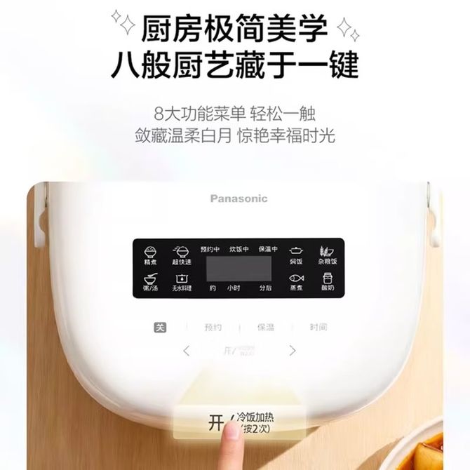 松下/Panasonic 白月光新品家用低糖电饭煲IH煮粥0涂层不锈钢4L电饭锅HJSL151 白月光新品家用低糖电饭煲IH煮粥0涂层不锈钢4L电饭锅 兑换价格 73900 里程 会员卡别 终身白金卡 白金卡 金卡 银卡 普通卡 儿童卡 服务 由 当益家电 发货并提供售后 颜色: 白色 购买数量: 件 库存件 配送地址: 立即购买 加入购物车 成功添加到购物车 关闭 购物车共有 种商品 总金额为: 组合销售 产品介绍 产品规格 售后服务 产品咨询 发现好货 苏泊尔(SUPOR) 电饭煲电饭锅4L大容量 不粘内胆4-6个人前置大屏面板24小时预约上蒸下煮多功能家用智能SF40FC0063 8300 里程 奥克斯/AUX 电饭煲3L电饭锅 2-3人小型预约智能电饭煲VK-309F2 5100 里程 苏泊尔(SUPOR) 迷你电饭煲家用电饭锅2-3人3L小容量蓝钻不粘内胆快煮饭功能智能预约小型多功能SF30FC0187 6100 里程 美菱/MELNG 电饭煲3L触控式预约定时MF-LC3005 4400 里程 苏泊尔(SUPOR) 煮饭煮粥智能预约多功能一锅多用小型微压电饭锅30FC0187 7200 里程