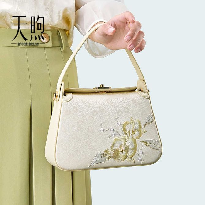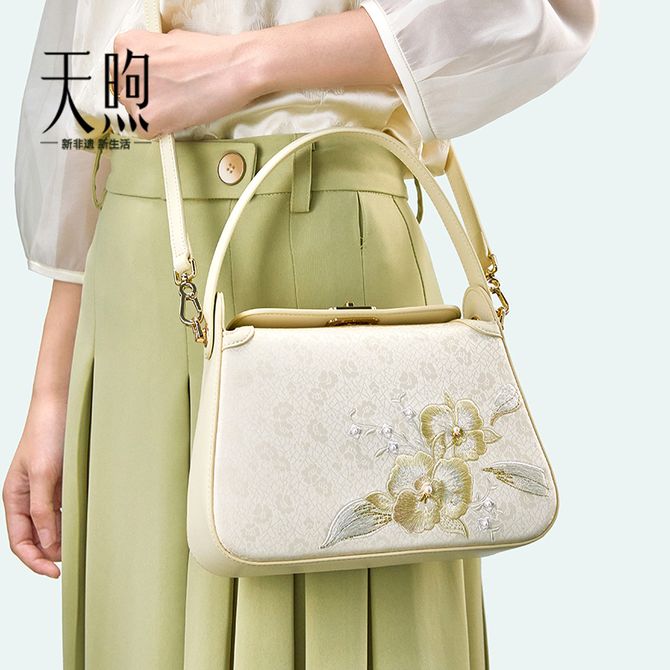 天煦/PMSIX 国风非遗绫绢刺绣钉珠新中式设计感单肩斜挎手提女包 LD120767