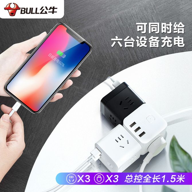 公牛(BULL) 魔方USB插座 插线板/插排/排插/接线板/拖线板 GN-U303H 黑色魔方全长1.5米 总控开关 小巧便携,自动分流 兑换价格 2600 里程 会员卡别 终身白金卡 白金卡 金卡 银卡 普通卡 儿童卡 服务 由 九樱互动家电专营店 发货并提供售后 插排线: 有线 插位: 6插位 购买数量: 件 库存件 配送地址: 立即购买 加入购物车 成功添加到购物车 关闭 购物车共有 种商品 总金额为: