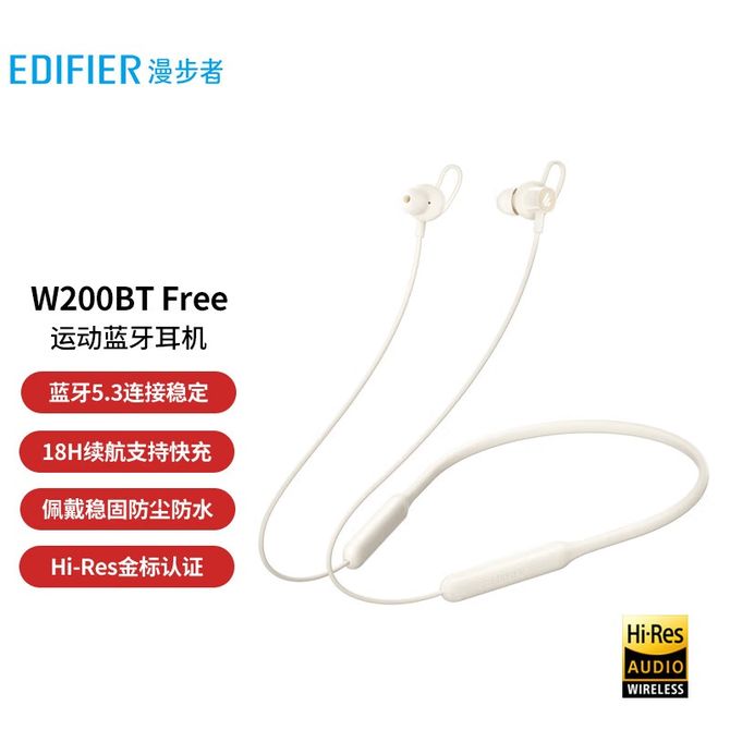 漫步者/EDIFIER 运动蓝牙耳机 金标HiFi音质挂脖线控通话降噪音乐耳麦 无线耳塞W200BT Free白色 大动圈复合镀钛振膜,金标认证HiFi音质,蓝牙5.3,智能通话降噪,强劲续航,IP55级防水 兑换价格 5500 里程 会员卡别 终身白金卡 白金卡 金卡 银卡 普通卡 儿童卡 服务 由 智科精品 发货并提供售后 颜色: 白色 购买数量: 件 库存件 配送地址: 立即购买 加入购物车 成功添加到购物车 关闭 购物车共有 种商品 总金额为: 组合销售 产品介绍 产品规格 售后服务 产品咨询 发现好货 飞利浦/Philips 蓝牙耳机 TAT1199-米白色 真无线半入耳式运动跑步迷你音乐降噪游戏低延迟长续航通用华为苹果 3500 里程 纽曼 耳夹式蓝牙耳机无线开放式运动防水跑步耳机LY100 5500 里程 飞利浦(PHILIPS) TAT2708 开放式真无线不入耳挂耳式耳机健身运动跑步 5500 里程 魔声 无线蓝牙耳机不入耳挂耳耳夹开放式HIFI音质舒适佩戴运动健身跑步防水长续航 AC330黑色 4400 里程 纽曼(Newmine) 开放式蓝牙耳机 耳夹式动圈HiFi音质无线耳机 蓝牙6.0长续航耳塞 5000 里程