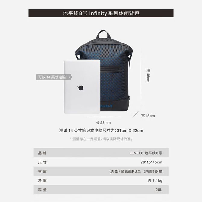 地平线8号 INFINITY高端双肩包男女士14英寸笔记本电脑包休闲书包旅行背包