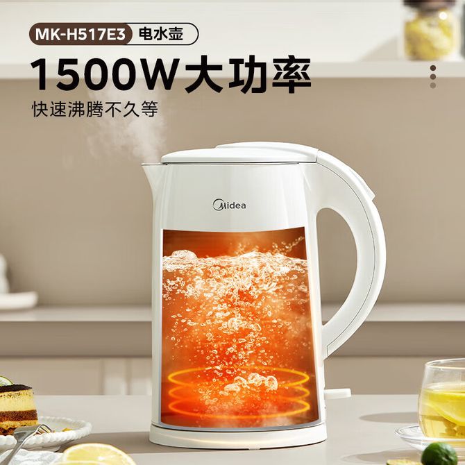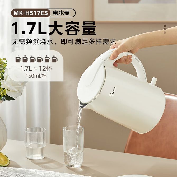 美的/Midea 电水壶 MK-H517E3 1.7L大容量 电水壶 热水壶烧水壶304不锈钢1.7L大容量 兑换价格 3500 里程 会员卡别 终身白金卡 白金卡 金卡 银卡 普通卡 儿童卡 服务 由 泓久电器专营店 发货并提供售后 颜色: 其他 购买数量: 件 库存件 配送地址: 立即购买 加入购物车 成功添加到购物车 关闭 购物车共有 种商品 总金额为: 组合销售 产品介绍 产品规格 售后服务 产品咨询 发现好货 苏泊尔(SUPOR)电水壶 1.7L 不锈钢/YL SW-17S13A 5700 里程 志高/Chigo 电水壶烧水壶1.8L大容量电热水壶双层防烫自动断电家用烧水开水壶不锈钢 电水壶 DC-A18F 1900 里程 小熊/Bear 电水壶家用烧水壶 不锈钢自动断电恒温热水壶保温一体电热水壶1.5L容量 3500 里程 小熊/Bear 烧水壶电水壶热水壶电热水壶开水壶304不锈钢内胆双层防烫1.5L大容量ZDH-Q15U8 3000 里程 志高(CHIGO) 电水壶1.8L大容量烧水壶家用热水壶开水壶DC-A18F 1900 里程