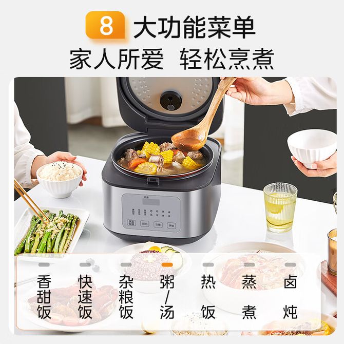 组合销售 产品介绍 产品规格 售后服务 产品咨询 发现好货 苏泊尔(SUPOR) 电饭煲电饭锅4L大容量 不粘内胆4-6个人前置大屏面板24小时预约上蒸下煮多功能家用智能SF40FC0063 8300 里程 奥克斯/AUX 电饭煲3L电饭锅 2-3人小型预约智能电饭煲VK-309F2 5100 里程 苏泊尔(SUPOR) 迷你电饭煲家用电饭锅2-3人3L小容量蓝钻不粘内胆快煮饭功能智能预约小型多功能SF30FC0187 6100 里程 美菱/MELNG 电饭煲3L触控式预约定时MF-LC3005 4400 里程 苏泊尔(SUPOR) 煮饭煮粥智能预约多功能一锅多用小型微压电饭锅30FC0187 7200 里程