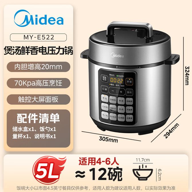 美的/Midea 深汤智能5L全自动电压力锅提鲜祛腥电锅开盖火锅高压易清洁双胆高压锅饭煲E522 智慧生活可以更美的 兑换价格 11600 里程 会员卡别 终身白金卡 白金卡 金卡 银卡 普通卡 儿童卡 服务 由 普芳家电 发货并提供售后 颜色: 其他 购买数量: 件 库存件 配送地址: 立即购买 加入购物车 成功添加到购物车 关闭 购物车共有 种商品 总金额为: