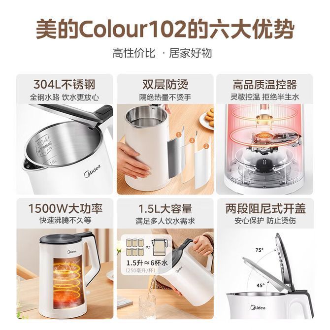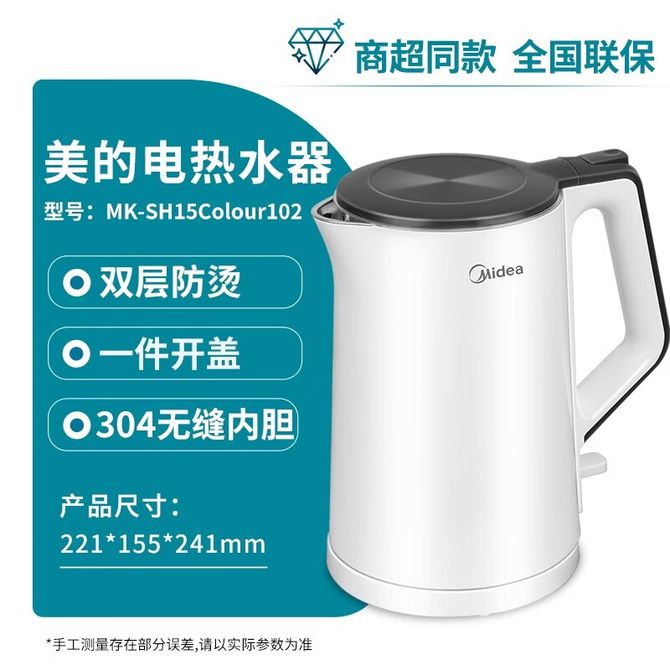 美的/Midea 电热水壶316L自动烧水壶煮开水保温家用大容量MK-SH15Colour102 智慧生活可以更美的 兑换价格 3800 里程 会员卡别 终身白金卡 白金卡 金卡 银卡 普通卡 儿童卡 服务 由 普芳家电 发货并提供售后 颜色: 其他 购买数量: 件 库存件 配送地址: 立即购买 加入购物车 成功添加到购物车 关闭 购物车共有 种商品 总金额为: 组合销售 产品介绍 产品规格 售后服务 产品咨询 发现好货 苏泊尔(SUPOR)电水壶 1.7L 不锈钢/YL SW-17S13A 5700 里程 志高/Chigo 电水壶烧水壶1.8L大容量电热水壶双层防烫自动断电家用烧水开水壶不锈钢 电水壶 DC-A18F 1900 里程 小熊/Bear 电水壶家用烧水壶 不锈钢自动断电恒温热水壶保温一体电热水壶1.5L容量 3500 里程 小熊/Bear 烧水壶电水壶热水壶电热水壶开水壶304不锈钢内胆双层防烫1.5L大容量ZDH-Q15U8 3000 里程 志高(CHIGO) 电水壶1.8L大容量烧水壶家用热水壶开水壶DC-A18F 1900 里程
