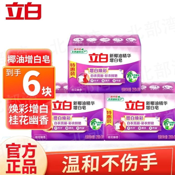 立白 增白洗衣皂新椰油亮白不发黄肥皂洁净去渍内裤家用大块 【6块】椰油精华皂 有效深层洁净 保持衣物 闪亮洁白不发黄 兑换价格 1500 里程 会员卡别 终身白金卡 白金卡 金卡 银卡 普通卡 儿童卡 服务 由 广西北部湾网络科技有限公司 发货并提供售后 净含量: 其他容量 清洁剂容量: 其他容量 购买数量: 件 库存件 配送地址: 立即购买 加入购物车 成功添加到购物车 关闭 购物车共有 种商品 总金额为: