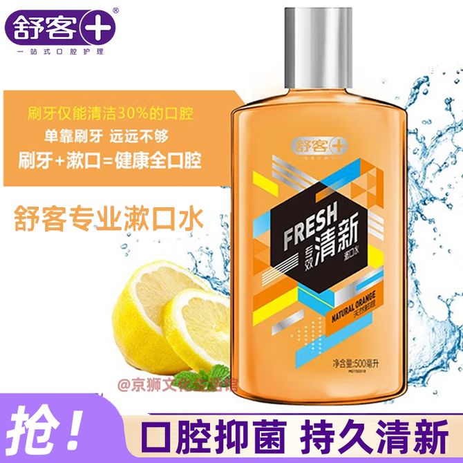 舒客 专效清新漱口水(天然鲜橙)500ml口腔抑菌快速清新口气去口腔异味 舒客专业漱口水,口腔抑菌,持久清新。 兑换价格 1100 里程 会员卡别 终身白金卡 白金卡 金卡 银卡 普通卡 儿童卡 服务 由 京狮文化生活馆 发货并提供售后 化妆品容量: 其他容量 购买数量: 件 库存件 配送地址: 立即购买 加入购物车 成功添加到购物车 关闭 购物车共有 种商品 总金额为: 组合销售 产品介绍 产品规格 售后服务 产品咨询 发现好货 舒客 沁爽清新漱口水(茶爽新)500mL*2大瓶 去口臭温和不辣口无醇涑口液口味含氟 1600 里程 高露洁(Colgate)漱口水250ml*2瓶元气薄荷味 1700 里程 高露洁(Colgate)贝齿鲜果薄荷漱口水500ml×3(新老包装随机发货) 3400 里程 舒客 专效抑菌漱口水500ML*2 清新口气 高效杀菌(不同包装随机) 1400 里程 高露洁/Colgate 漱口水 温和0酒精 500ml单瓶装 茉莉绿茶味 新旧包装随机发 1300 里程